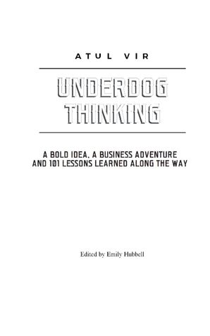 Underdog Thinking is real-life business adventure story that follows the journey of an Indian Immigrant to the U.S. who was told he “didn’t know a damn thing about American business.” But as opportunity would have it, a short time later he found himself an accidental entrepreneur with a front row ticket to the ins and outs of launching and growing a business. He was flying high on his growing success—until a fateful moment when everything changed. As businesses rise and fall to the tune of supply and demand, sometimes the harshest betrayals come out of nowhere, when you least expect it—as do the surprising sparks of hope. When an unforeseen circumstance initiates a chain of events that leave him at a crossroads he must make the tough call: to give in and give up, or push through and win. CEO, business ethics thought leader, speaker and author Atul Vir has lived that story. And even in the darkest moments when failure seemed most imminent, he drew on the work ethic instilled from his earliest days, and his commitment to do right by his customers—to bring his dream up from the ashes and back to life. In his new book, Underdog Thinking, Vir inspires readers to face any challenge that comes their way—with practical business lessons for every step of the journey gleaned from his experience as both an immigrant building a business and as CEO of Equator Appliances for more than 25 years. The book dives into current themes dominating the business landscape, including: global business, overcoming failure, bootstrapping, securing financing, immigration and what innovation truly means. While many people offer sage advice on these topics, Vir’s lessons are paired with a unique, captivating story and more than two decades of entrepreneurial expertise in an industry dominated by much bigger players—major multinational corporations.