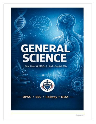 यह eBook General Science (सामान्य विज्ञान) की सबसे महत्वपूर्ण और परीक्षा-उपयोगी जानकारी को One Liner + MCQ format में प्रस्तुत करती है।