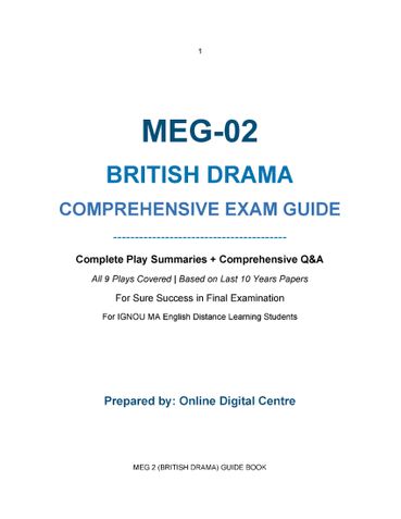 MEG-2: British Drama specially designed for students of the Master of Arts in English programme at Indira Gandhi National Open University (IGNOU). MEG-2: British Drama provides clear explanations, simplified summaries, critical analyses, and exam-oriented answers to help learners understand complex literary texts with confidence.