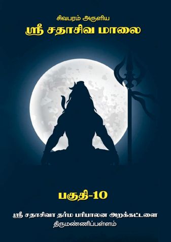 This book, titled "Shiva Param Aruliya Sri Sadashiva Malai Part 10," is published by the Sri Sadashiva Dharma Paripalana Trust, Thirumannipallam, Mayiladuthurai District. It is being released on ebook pothi.com with the noble intention of making it freely available to all spiritual seekers for the general welfare. This book is published by the Sri Thayalnayaki Sametha Sri Adi Vaidyanatha Swamy Temple, Thirumannipallam. The objective of the Sri Sadashiva Dharma Paripalana Trust is that everyone should read and benefit from this book. For this, your kind cooperation, suggestions, and contributions are requested to ensure its successful dissemination.