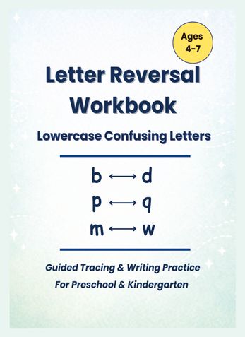This workbook is designed for children who already recognize lowercase letters but struggle with writing similar or reversed letter shapes. Instead of covering the entire alphabet again, this book focuses on commonly confused lowercase letters such as b/d, p/q, m/w, n/u, and other look-alike letter pairs.
